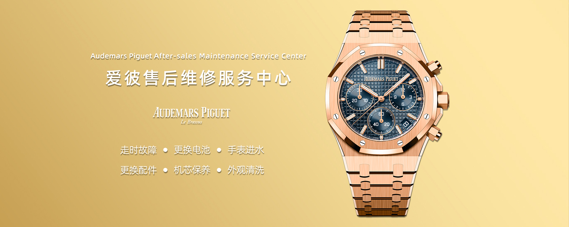 爱彼官方售后维修服务中心为客户提供专业、全面的手表维修与保养服务,团队由经过专业培训的不乏高级技术顾问和资深技师,他们技艺精湛,能够处理从简单维护到复杂维修的各种需求。中心配备先进的检测与维修设备,确保维修服务的高质量。当您的腕表出现走时故障和机件损坏时,请及时在线预约服务,凭预约码进店尊享技师快捷服务。同时我们构建了出色的客户维修服务网络,您的腕表有任何问题均可拨打客服电话咨询400-187-8753,我们竭诚为您提供在线咨询及检修服务,以保证您的腕表得到始终如一的精心保养与维护,保障它的恒久价值与可靠性能得以世代相传。请务必定期保养及检修您的腕表,才...